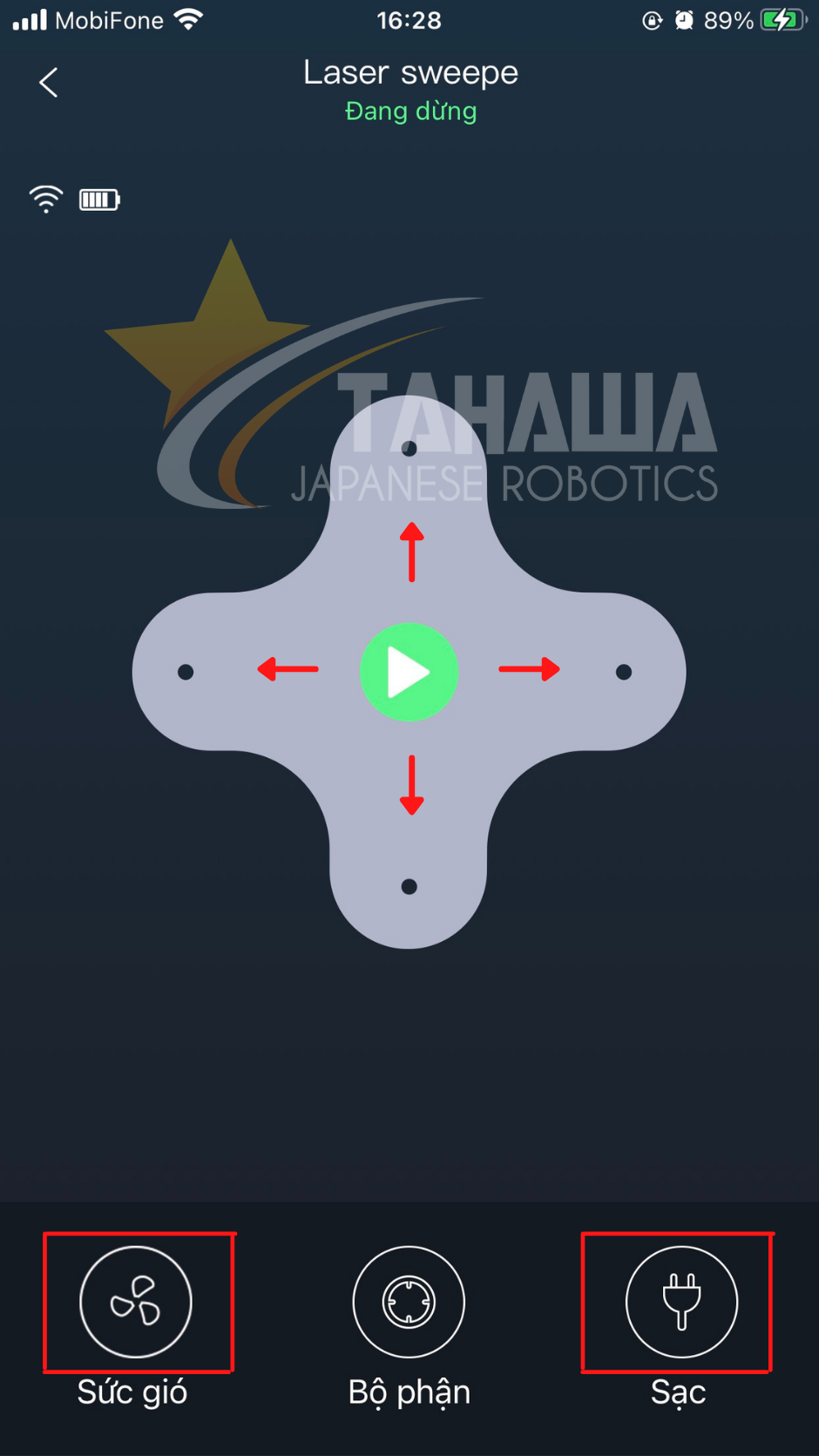 Hoặc nếu ở nhà, chúng ta cũng có thể điều khiển theo ý thích lên xuống trái phải. Ngoài ra, có thể điều chỉnh Lực hút và cho robot về Sạc.
