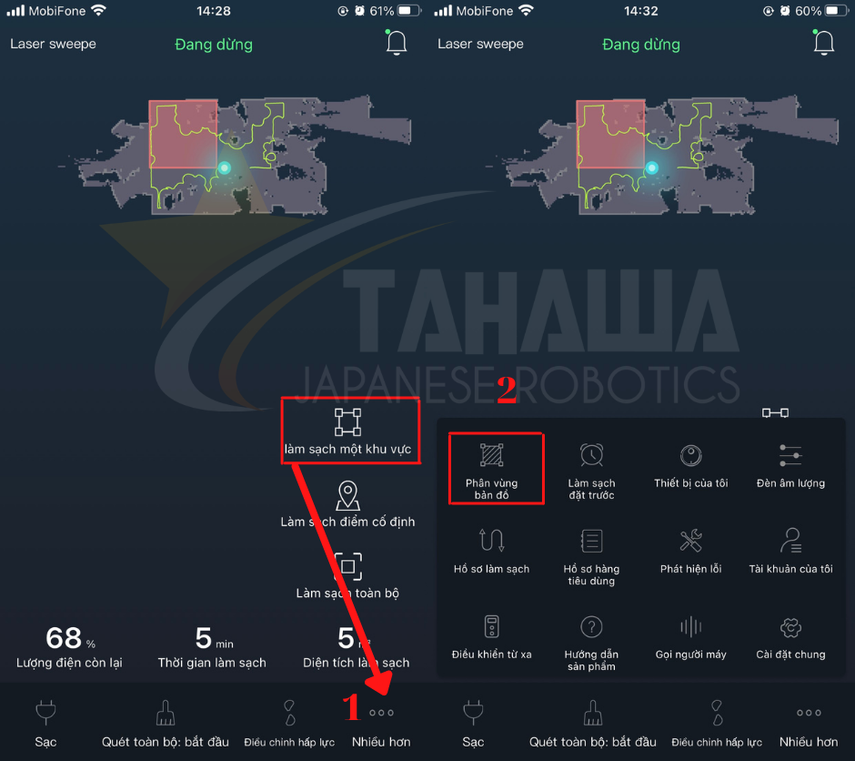 Phân vùng bản đồ của robot hút bụi Tahawa Nhật Bản TH-06Plus