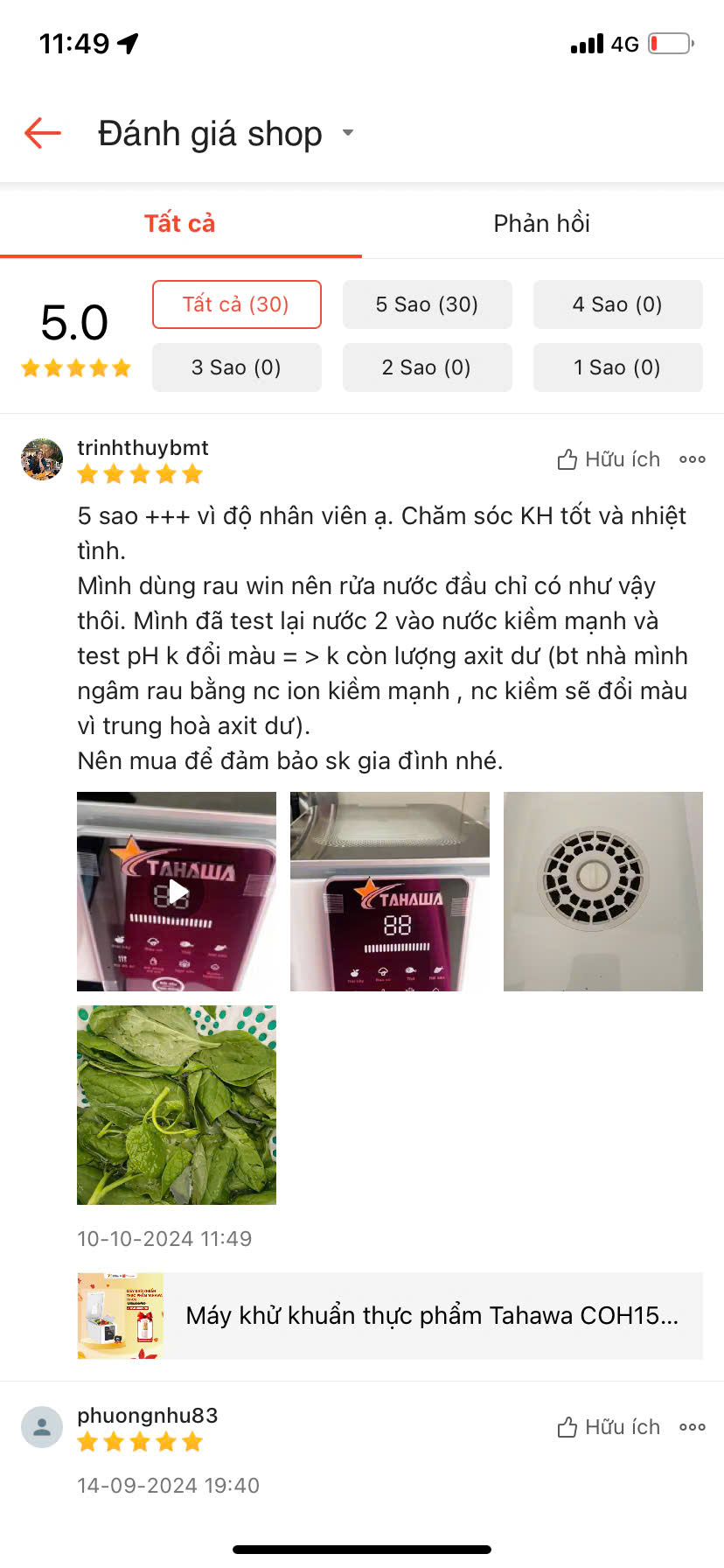 Khách hàng đã sử dụng máy rửa rau củ quả Tahawa thường có những phản hồi tích cực về sản phẩm. Dưới đây là một số đánh giá tiêu biểu từ người dùng: