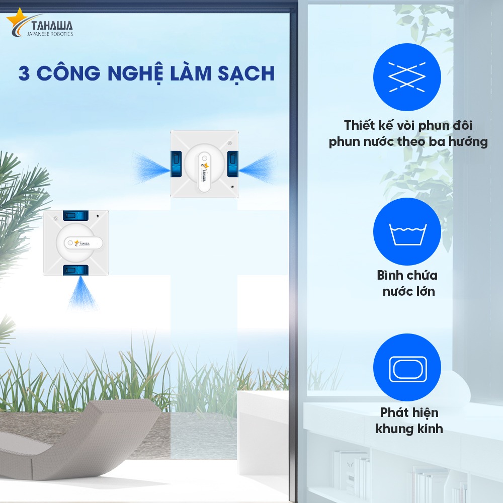 Với thiết kế gọn, dây an toàn chống rơi và khả năng điều khiển qua ứng dụng điện thoại, robot TAHAWA không chỉ phù hợp với văn phòng nhiều kính mà còn là lựa chọn lý tưởng cho căn hộ cao tầng, biệt thự, nhà phố hiện đại.