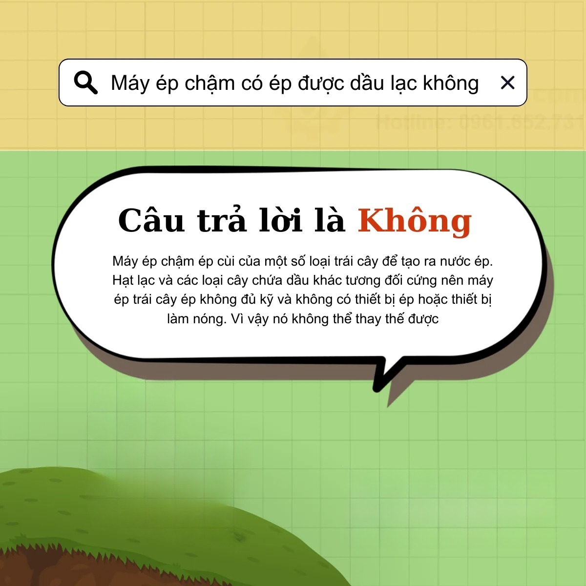 Máy ép chậm từ lâu đã trở thành thiết bị phổ biến trong nhiều gia đình Việt, đặc biệt trong việc ép nước hoa quả hoặc ép sữa hạt. Tuy nhiên, khi nhu cầu ép dầu lạc tại nhà tăng cao, nhiều người bắt đầu đặt câu hỏi: Liệu máy ép chậm có ép được dầu lạc không? Câu trả lời là: KHÔNG nên dùng máy ép chậm để ép dầu lạc.
