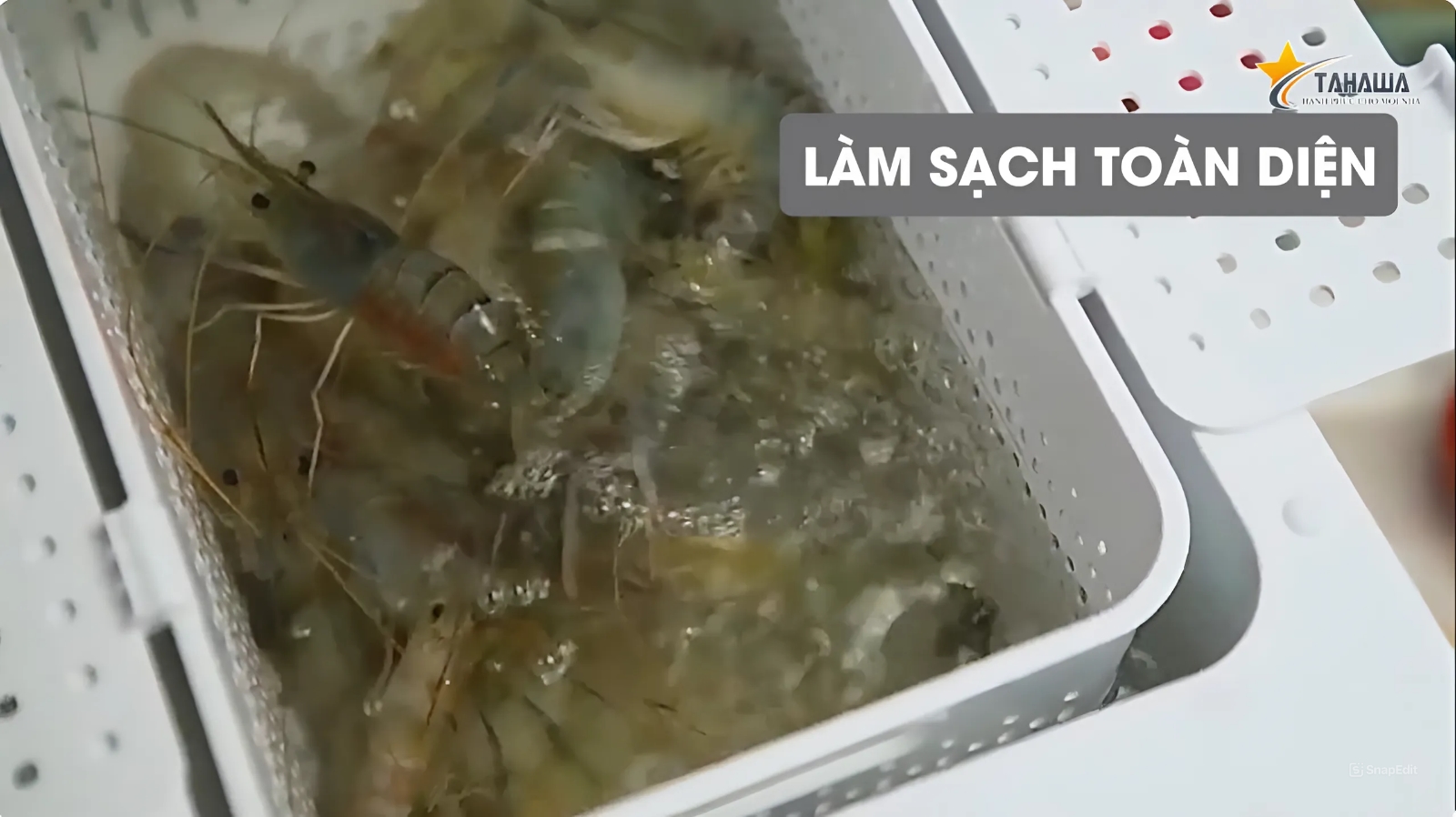 Máy khử khuẩn thực phẩm giúp làm sạch hải sản một cách hiệu quả, loại bỏ các loại vi khuẩn, ký sinh trùng, chất kháng sinh có trong hải sản. Quá trình này không chỉ làm sạch bề mặt mà còn đảm bảo rằng hải sản luôn tươi ngon, giữ nguyên giá trị dinh dưỡng và an toàn cho sức khỏe. Điều này đặc biệt quan trọng đối với các món ăn từ hải sản tươi sống, như sashimi, khi mà việc làm sạch kỹ lưỡng là yếu tố then chốt để đảm bảo an toàn thực phẩm.