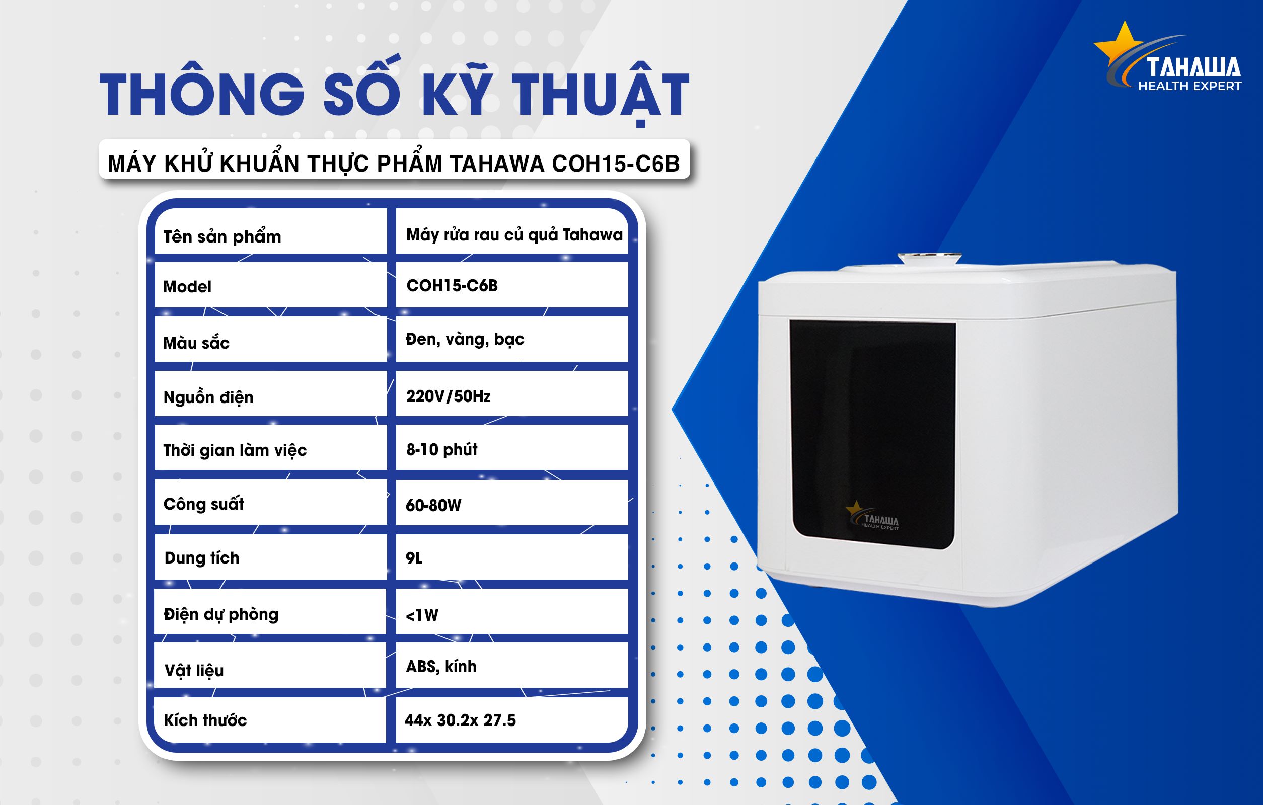 Máy khử khuẩn thực phẩm đa năng Tahawa COH15-C6B mang tới cho bạn khả năng: