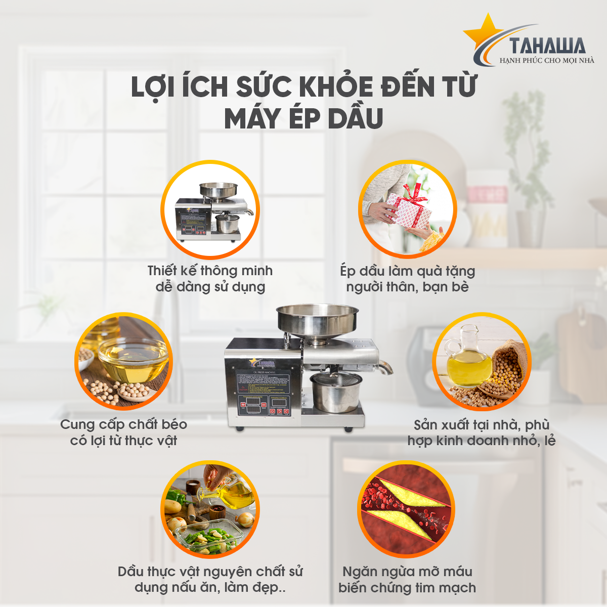 Máy ép dầu thực vật Tahawa TH-X8S hay máy ép dầu gia đình Tahawa TH-888A giúp tự tay ép các loại dầu dinh dưỡng như dầu óc chó, dầu macca, dầu mè đen – vừa đảm bảo an toàn thực phẩm, vừa tiết kiệm chi phí dài lâu.