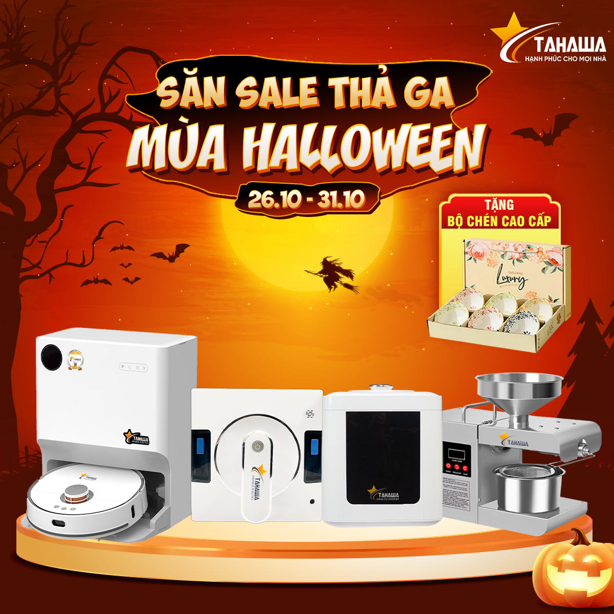 Mùa Halloween tặng quà gì? Gợi ý quà tặng ý nghĩa từ Tahawa: robot hút bụi, máy ép dầu, máy khử khuẩn thực phẩm – quà tặng sức khỏe, tiện ích và đẳng cấp.