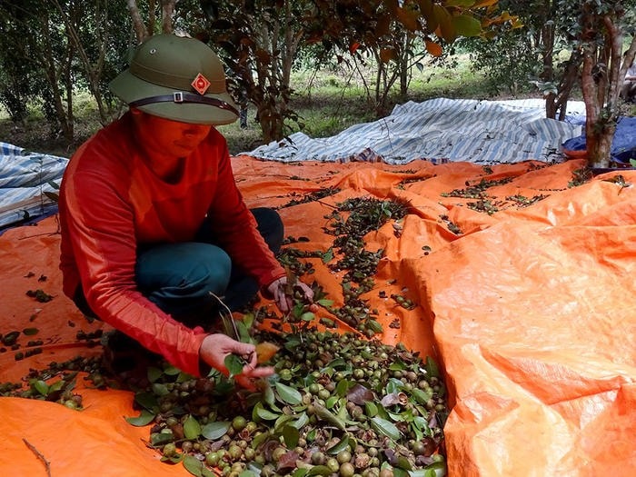 Thu hoạch quả sở: Vào mùa thu hoạch (thường từ tháng 10 đến tháng 12), quả sở được hái khi vỏ bắt đầu ngả màu và có dấu hiệu nứt nhẹ.