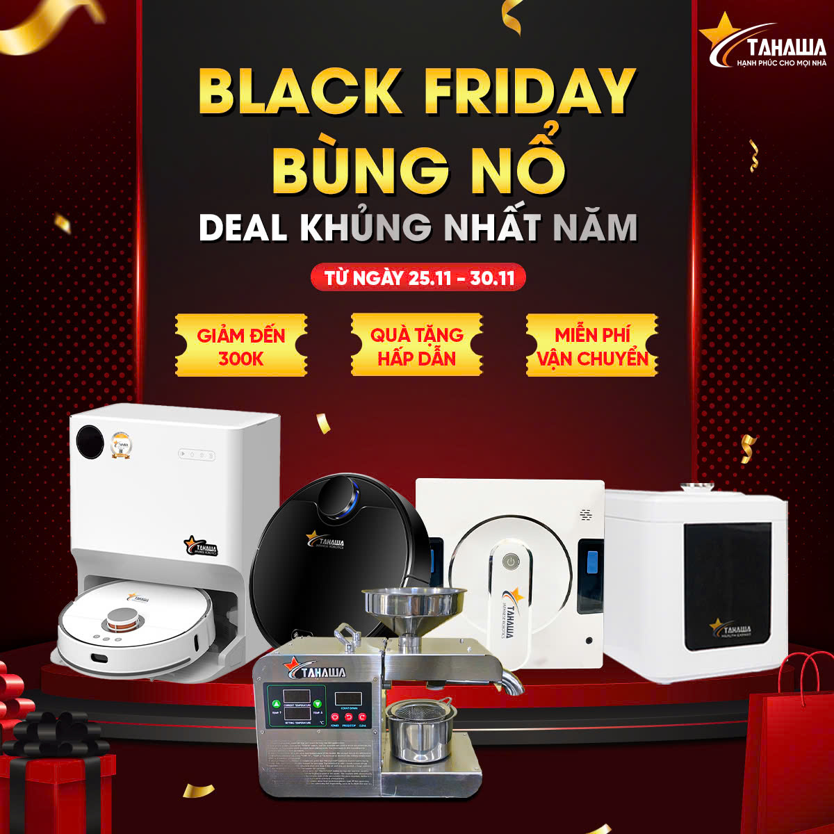 Black Friday Tahawa: Giảm ngay 300.000đ và tặng quà giá trị khi mua máy ép dầu, robot hút bụi, máy khử khuẩn và nhiều thiết bị gia dụng cao cấp. Ưu đãi từ 25/11–30/11, số lượng quà tặng có hạn. Mua ngay để không bỏ lỡ cơ hội tốt nhất trong năm.