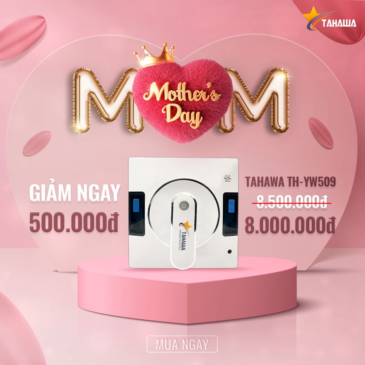 🎁 Mừng Ngày Của Mẹ, tặng ngay voucher giảm 500K khi mua Robot lau kính Tahawa TH-YW509. Giá ưu đãi chỉ còn 8.000.000đ! Áp dụng từ 10–13/05, số lượng giới hạn 20 suất. Đặt hàng ngay!