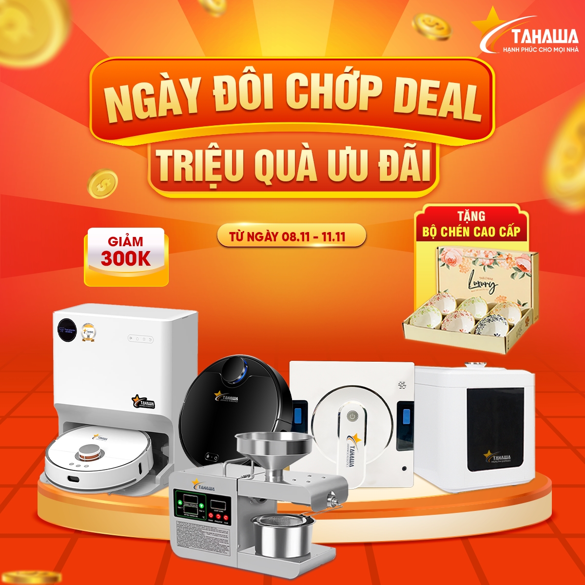Ngày 11 Tháng 11 này, Tahawa mang đến cho khách hàng chương trình ưu đãi đặc biệt mang tên “Ngày Đôi Chớp Deal – Triệu Quà Ưu Đãi” – sự kiện mua sắm được mong chờ nhất trong năm với hàng loạt quà tặng và giảm giá cực sốc dành riêng cho những tín đồ yêu thích thiết bị gia dụng thông minh.