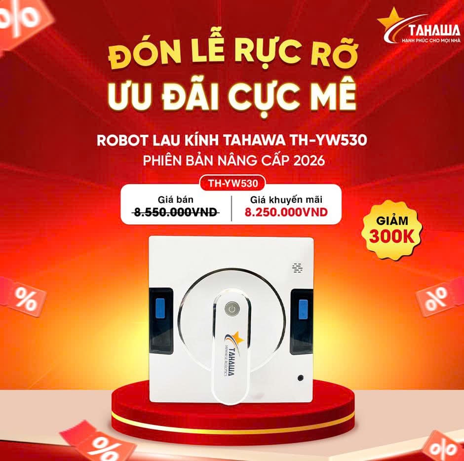 Hiểu được điều đó, Tahawa mang đến chương trình ưu đãi cực hấp dẫn dành riêng cho dòng Robot lau kính Tahawa TH-YW530 – Phiên bản nâng cấp 2026, giúp khách hàng dễ dàng sở hữu thiết bị thông minh với mức giá tốt nhất trong mùa lễ này.