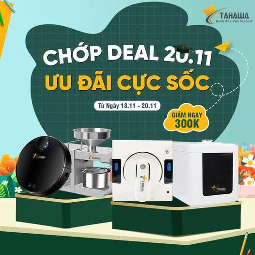 Nhân dịp Ngày Nhà giáo Việt Nam 20/11, chúng tôi triển khai chương trình “CHỚP DEAL 20/11 – ƯU ĐÃI CỰC SỐC” nhằm gửi lời tri ân sâu sắc tới quý thầy cô và khách hàng đã luôn đồng hành cùng thương hiệu. Đây là thời điểm lý tưởng để sở hữu các thiết bị gia dụng – công nghệ hiện đại với mức giá ưu đãi hiếm có trong năm, đáp ứng trọn vẹn nhu cầu chăm sóc gia đình, cải thiện chất lượng sống và tối ưu công việc nội trợ hằng ngày.