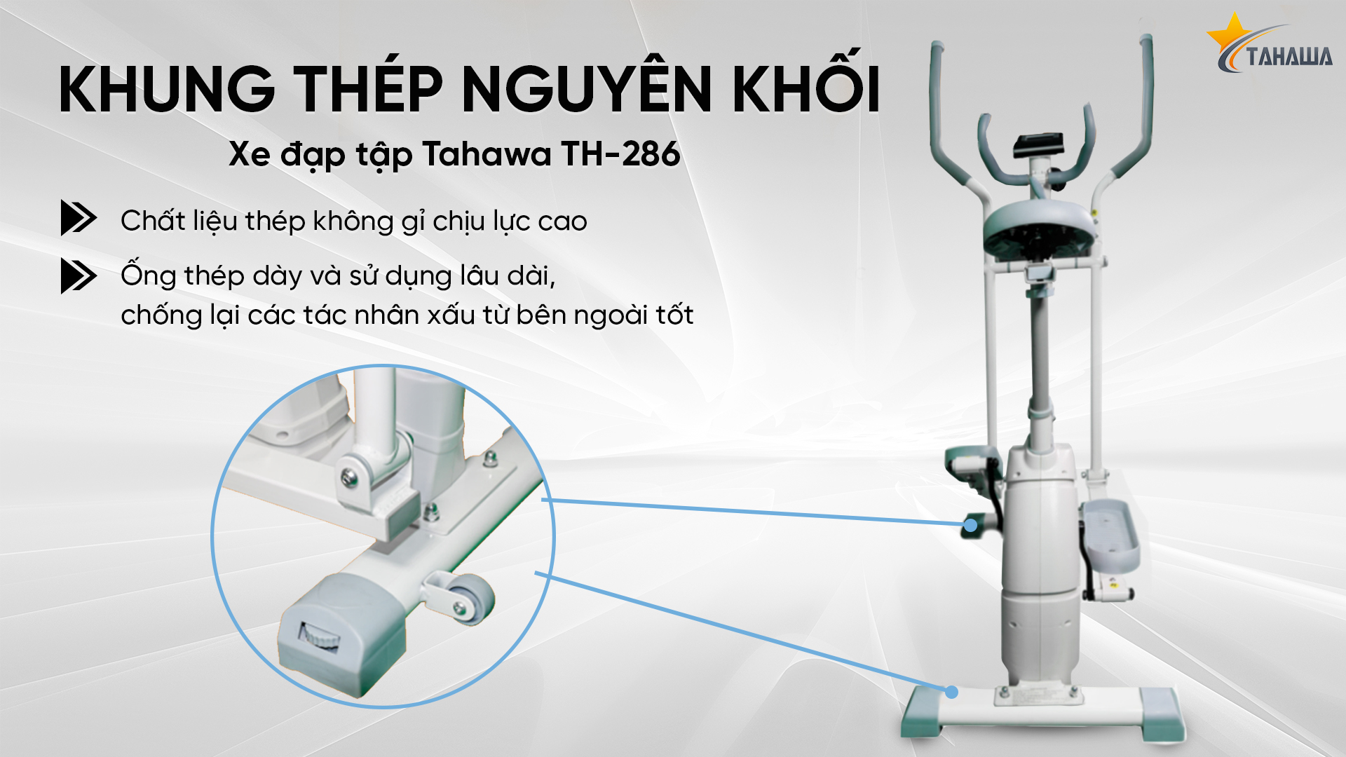 Ngoài ra, xe đạp tập tại nhà Tahawa TH-286 trang bị bánh đà được làm từ cao su đặc nguyên khối, có trọng lượng 6 kg giúp xe được ổn định, giữ được thăng bằng tốt kể cả khi tập luyện với cường độ cao.