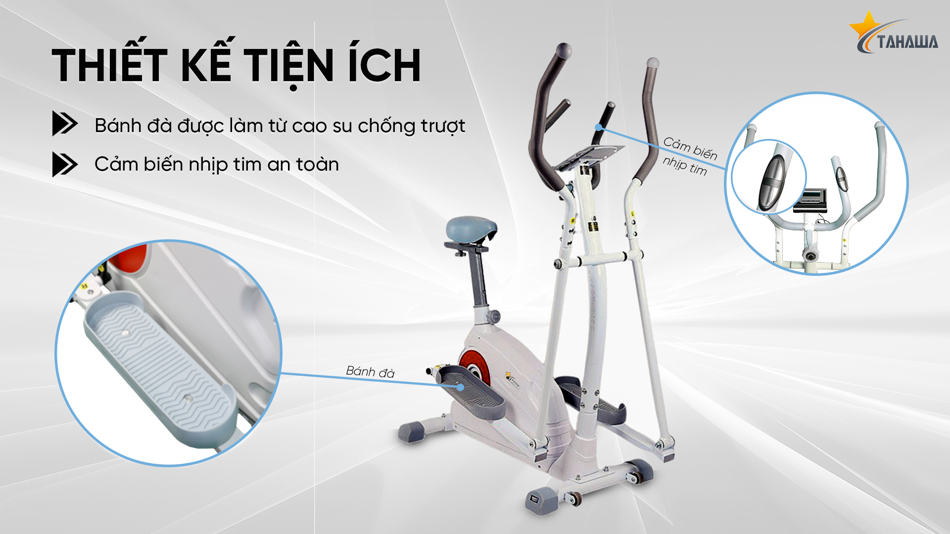 - Trang bị 8 mức kháng lực, đáp ứng được nhiều nhu cầu tập luyện khác nhau, hỗ trợ hiệu quả trong việc giảm Cholesterol xấu trong máu, đẩy nhanh quá trình lưu thông máu, đem đến một cơ thể tràn đầy năng lượng.
