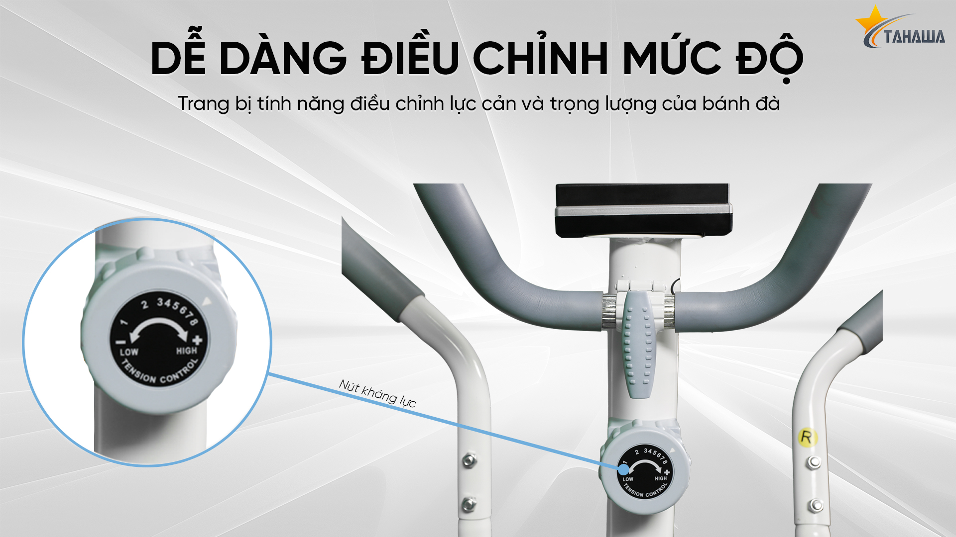 Xe đạp tập thể dục Tahawa TH-286 trang bị 8 mức đạp từ thấp đến cao, giúp đáp ứng được đa dạng nhu cầu tập luyện của từng thành viên trong gia đình. Đồng thời cũng nhằm đảm bảo hiệu quả khi luyện tập, không tốn quá nhiều sức dẫn đến ảnh hưởng sức khỏe và tinh thần.