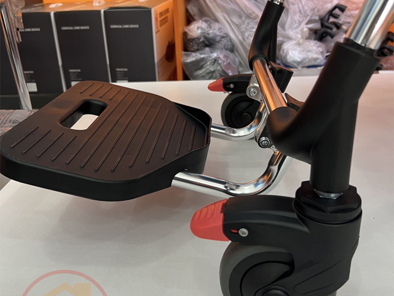 Xe có thiết kế vị trí để chân bằng nhôm đúc, có thể tháo dời hoặc gấp gọn.