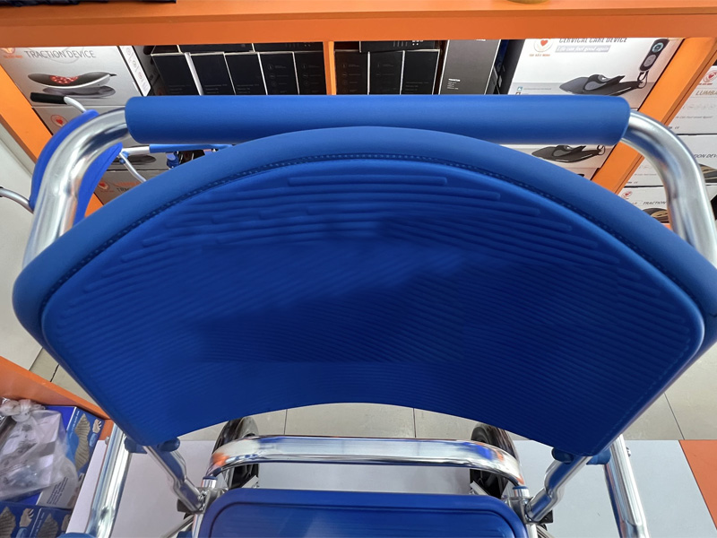 Ghế ngồi và tựa lưng được làm từ nhựa cứng, bên trên có cao su mềm và chống nước tạo sự thoải mái cho bệnh nhân. Hai lớp được kết nối với nhau bằng chốt cao su gắn liền với lớp mặt ghế bên trên, bên dưới tấm nhựa có lỗ tròn để ấn chốt cao su giữ mặt ghế.